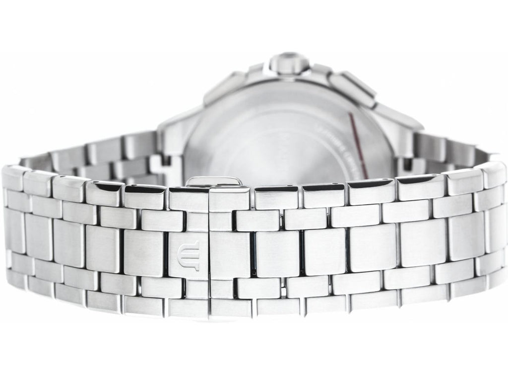 The Maurice Lacroix Chronograph AI1018-SS002-430-1 has a case made of stainless steel, which is complemented by a bracelet made of the same material. Inside it, a Swiss Ronda 3540.D battery-powered movement with five jewels ticks reliably. In addition to the date display, which can be found at the six o'clock index, the watch also has a stopwatch function with the ability to measure up to 30 minutes.