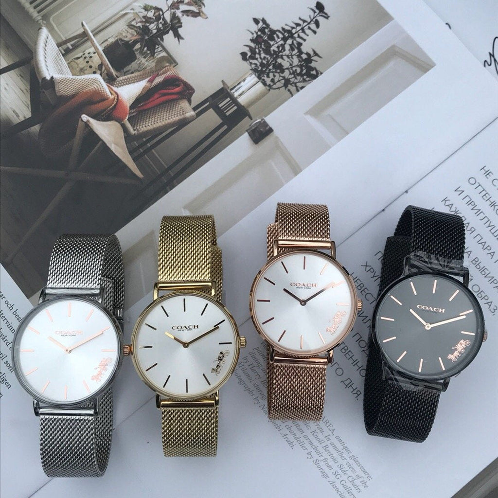 Named for a quiet street in New York City’s West Village, the Perry is a traditional round watch perfect for casual wear. It features a face etched with the iconic Coach Horse and Carriage and an elegant fine mesh bracelet.