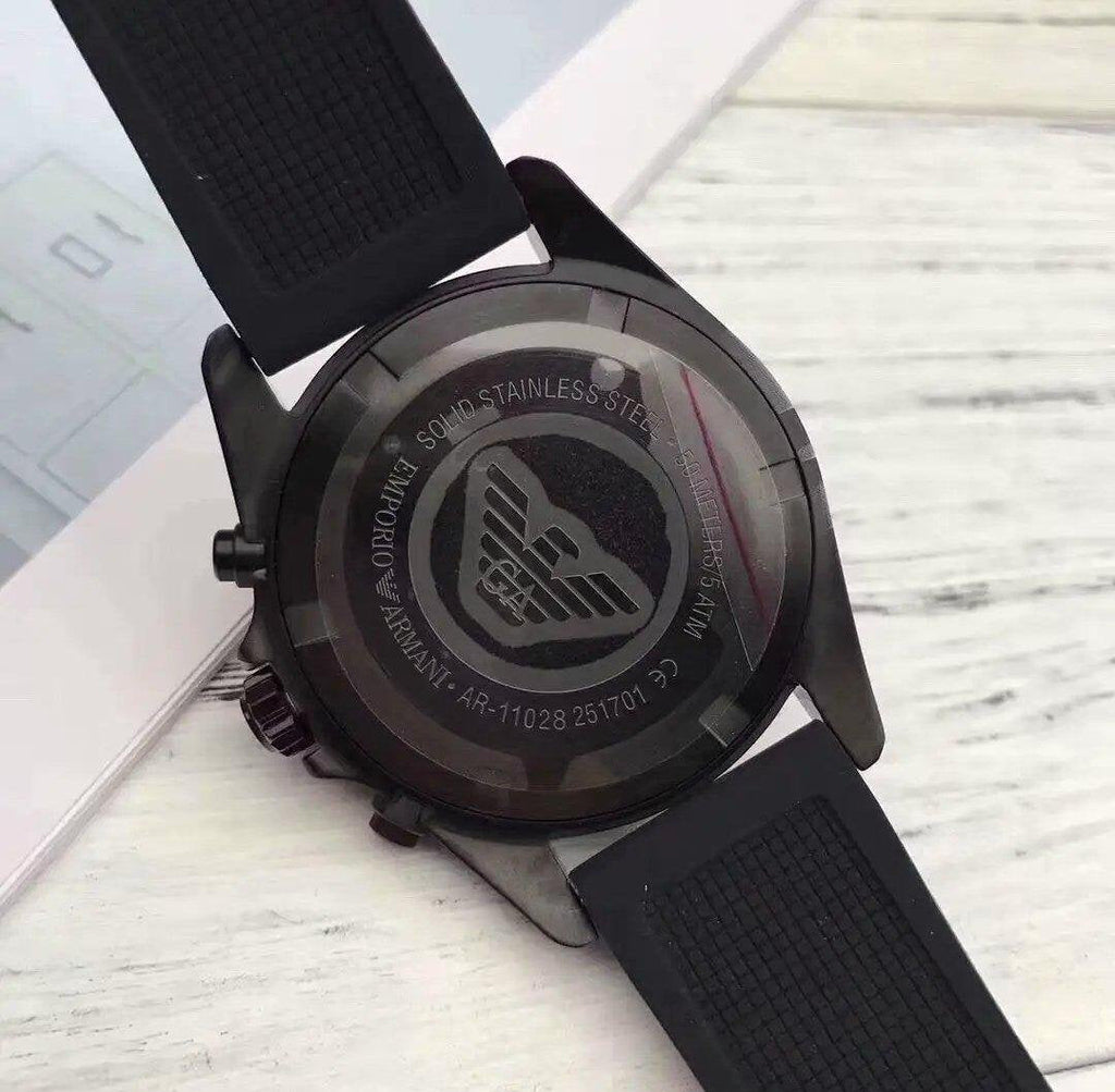 Emporio Armani AR11028 Giovanni Chronograph Men's Watch – Black Dial & Black Rubber Strap