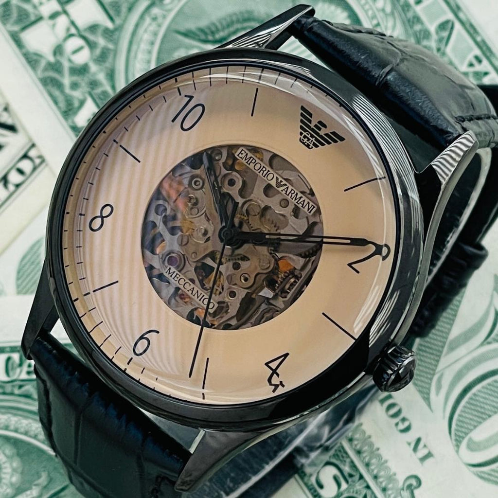 The Emporio Armani Meccanico AR1923 combines classic elegance with precise craftsmanship. Featuring a clean white dial paired with a sleek black leather strap, this men's watch offers a refined look suitable for both formal and casual occasions. Its mechanical movement ensures reliable timekeeping, while the minimalist design highlights Armani’s signature sophistication. Ideal for those who appreciate timeless style and expert engineering.