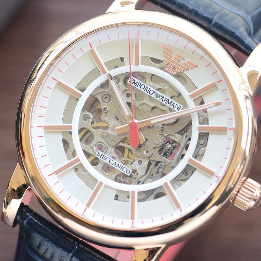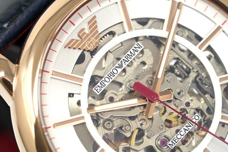 The Emporio Armani Meccanico AR60009 combines refined craftsmanship with modern design. Featuring a sleek silver dial paired with a rich blue leather strap, this men's watch offers both elegance and durability. Its precise mechanical movement ensures reliable timekeeping, making it an excellent choice for those who appreciate sophisticated style and technical excellence. Perfect for formal occasions or everyday wear, this timepiece reflects Emporio Armani’s commitment to quality and timeless aesthetics.