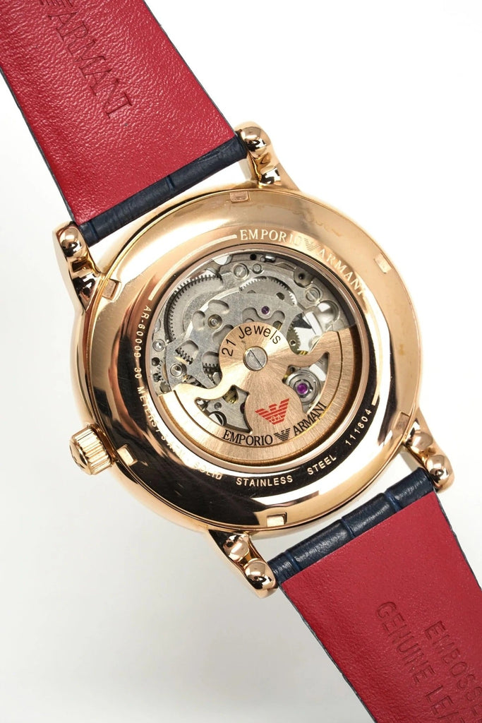 Emporio Armani AR60009 Meccanico Men's Watch – Silver Dial & Blue Leather Strap