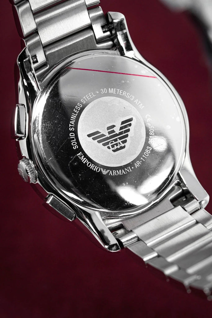 Emporio Armani AR11083 Valente Chronograph Quartz Men's Watch – Black Dial & Silver Steel Bracelet
