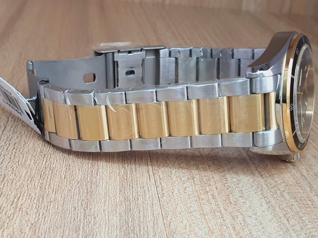 Emporio Armani AR80017 Men’s Quartz Two-tone Stainless Steel Black Dial 44mm Watch sophisticated stainless steel dual tone bracelet and classic black dial add a touch of attitude to this style