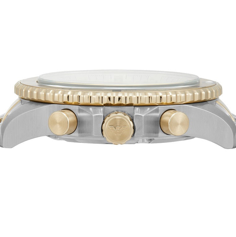 Emporio Armani World Explorer Chronograph Cream Dial Two Tone Steel Strap Watch for Men - AR11606