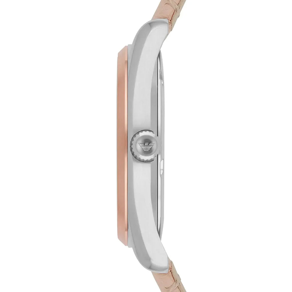 Elevate your everyday elegance with the Emporio Armani Tazio AR6133, a stunning timepiece designed for the modern woman. This sophisticated watch features a luminous mother-of-pearl dial that catches the light beautifully, paired with a soft pink leather strap for a refined, feminine touch. The sleek stainless steel case and precise quartz movement ensure reliable timekeeping, while the classic design seamlessly transitions from office to evening. Perfect for those who appreciate Italian craftsmanship and timeless style, this watch is an investment piece that complements any wardrobe and makes an unforgettable impression.