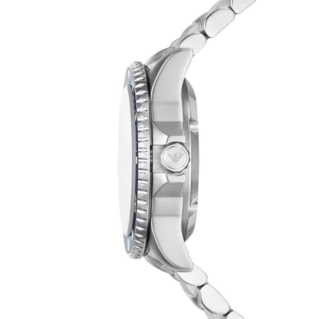 Discover timeless sophistication with the Emporio Armani Sea Explorer. This striking timepiece features a captivating blue dial that commands attention, paired with a polished silver steel bracelet that exudes refined elegance. Built for the modern man who values both style and substance, the AR60079 combines Italian design heritage with reliable performance. Whether you're navigating boardroom meetings or weekend adventures, this versatile watch seamlessly transitions from day to night. Elevate your wrist game with a piece that speaks to your discerning taste and appreciation for quality craftsmanship.