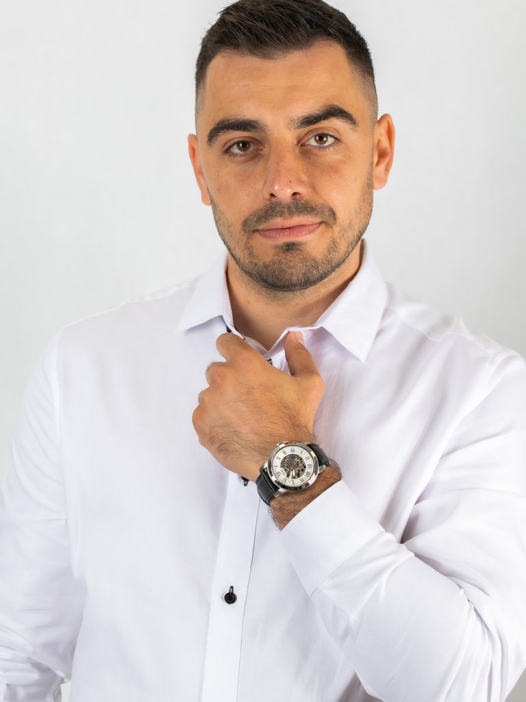 The Fossil Grant Automatic Skeleton ME3101 combines classic design with mechanical sophistication. Featuring a white dial that reveals the intricate automatic movement beneath, this watch offers a captivating view of its inner workings. The black leather strap adds a refined touch, ensuring comfort and style for everyday wear. Expertly crafted, it balances traditional aesthetics with modern engineering, making it an excellent choice for those who appreciate both form and function in a timepiece.