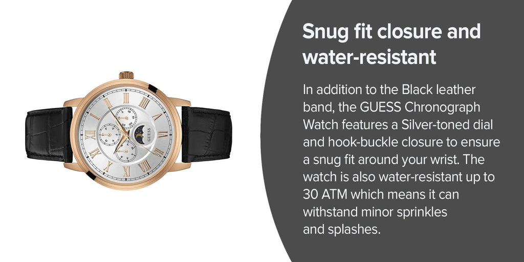 Guess W0870G2 Delancy Quartz Men's Watch – Silver Dial & Black Leather Strap