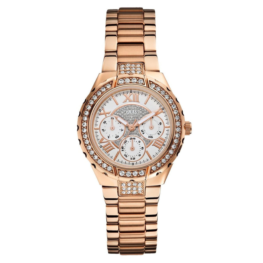 Guess W0111L3 Viva Diamonds Women's Watch – White Dial & Rose Gold Steel Bracelet