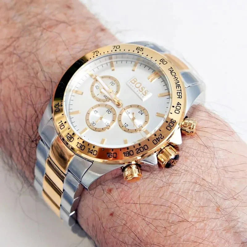 Hugo Boss 1512960 Ikon Chronograph Men's Watch – Silver Dial & Two-Tone Steel Strap