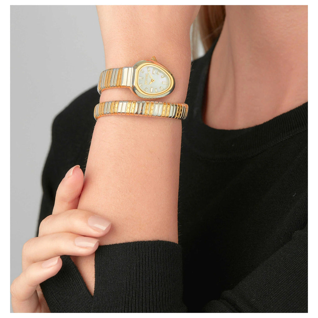 Elevate your everyday elegance with the Just Cavalli Aversa, a stunning timepiece that seamlessly blends luxury and sophistication. The mesmerizing mother of pearl dial catches light beautifully, creating an ever-changing shimmer that draws admiration. Crafted from premium two-tone steel, this watch combines the warmth of gold with the cool refinement of silver for a versatile look that complements any occasion. The refined design and quality construction make it the perfect accessory for women who appreciate fine craftsmanship and timeless style. Make a statement with a watch that's as distinctive as you are.