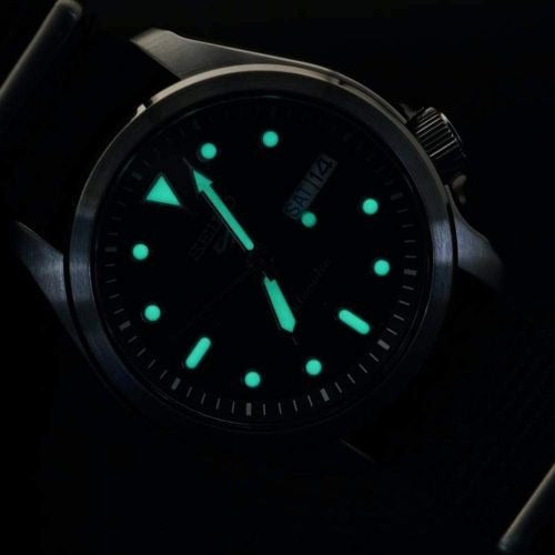 Add a new lease of life to your look with this men's Military style watch from Seiko with Lumibrite on hands and indexs, 24 jewels. Featuring a handsome analogue Black face in a 40mm diameter 11mm thick case. Plus, it has many other Seiko features, including Crown Protector, Day/Date, Hardlex Crystal, Luminous Hands, Push/Pull Crown, See-through case back, Sweeping Seconds Finger and Water-Resistant. With a military style webbing standard length strap.