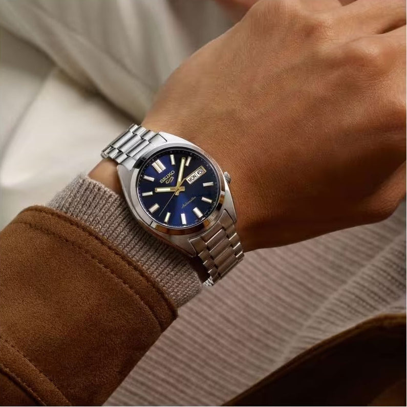 The Seiko 5 Sports Automatic Blue Dial Silver Steel Strap Watch for Men combines classic Japanese craftsmanship with reliable everyday performance. Featuring a striking blue dial that catches the light beautifully, this timepiece is powered by an automatic movement that keeps accurate time through natural wrist motion. The stainless steel case and matching bracelet offer durability and a polished finish that complements both casual and smart-casual outfits. Water-resistant design makes it suitable for daily wear and light water exposure. The Seiko 5 series is renowned for its robust construction and value, making this SRPL55K1 an excellent choice for watch enthusiasts seeking a dependable automatic watch with timeless appeal.