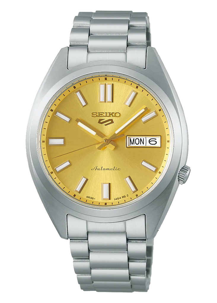 Seiko 5 Sports Automatic Gold Dial Silver Steel Strap Watch for Men - SRPL59K1