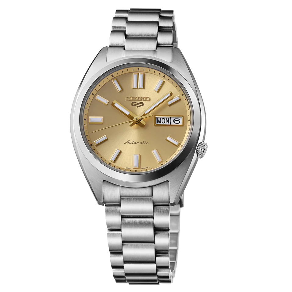 The Seiko 5 Sports Automatic Gold Dial Silver Steel Strap Watch for Men combines timeless elegance with reliable everyday performance. Featuring a striking gold dial that catches the light beautifully, this timepiece is housed in a polished silver steel case with a matching steel bracelet for a cohesive, sophisticated look. Powered by an automatic movement, this watch delivers the mechanical precision Seiko is known for. The durable steel construction ensures longevity, while the classic sports aesthetic makes it versatile enough for both casual and professional settings. Built to withstand daily wear, the Seiko 5 Sports collection represents exceptional value for watch enthusiasts seeking quality craftsmanship and dependable timekeeping in one elegant package.