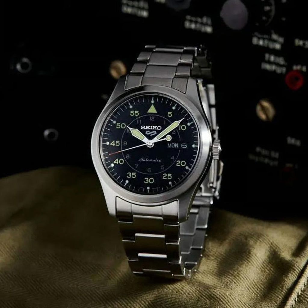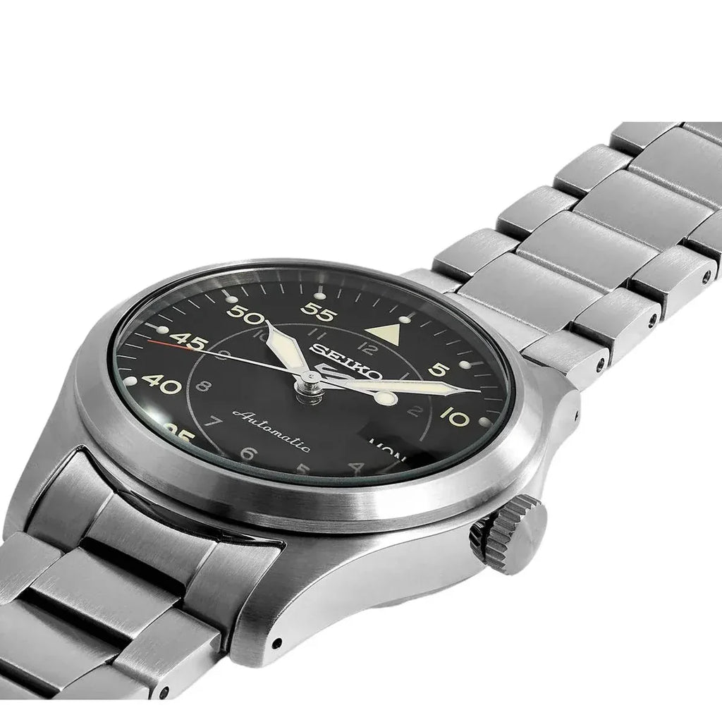 Seiko 5 Sports Flieger Automatic Black Dial Silver Steel Strap Watch for Men - SRPH27K1