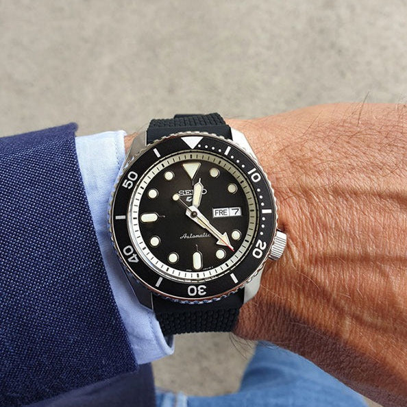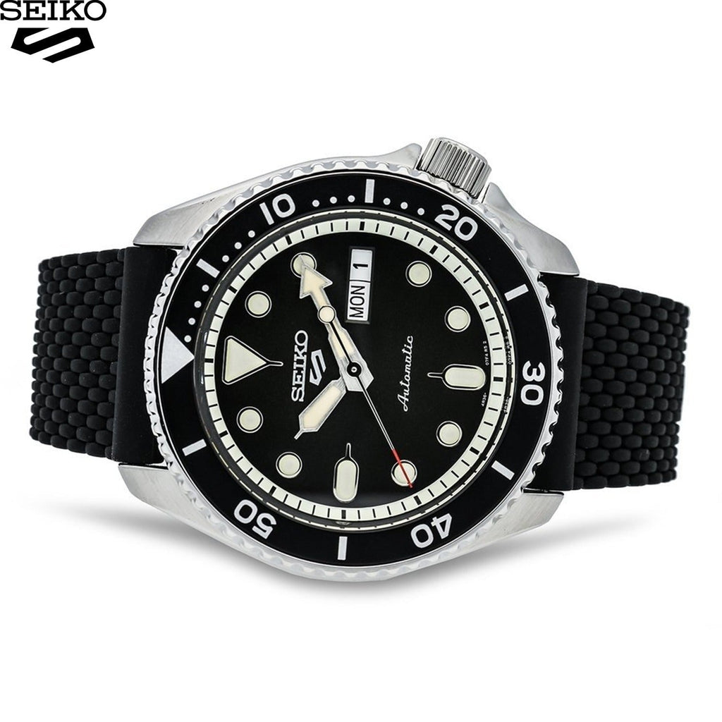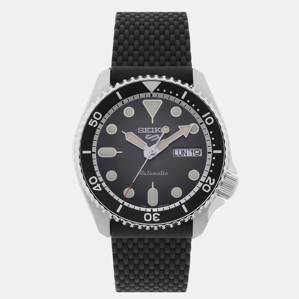 Seiko 5 Sports SKX Automatic Black Dial Black Silicone Strap Watch for Men - SRPD73K2