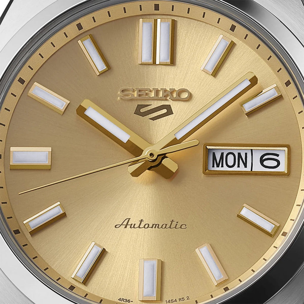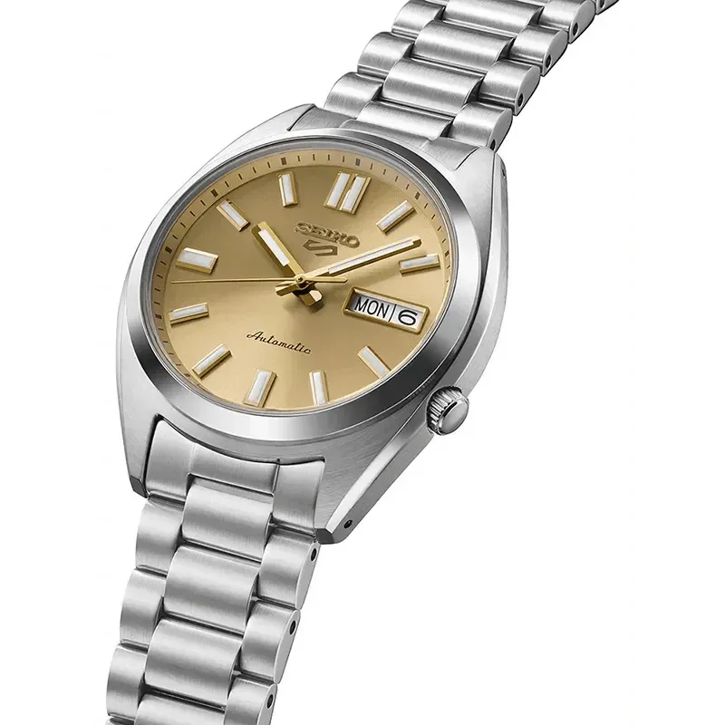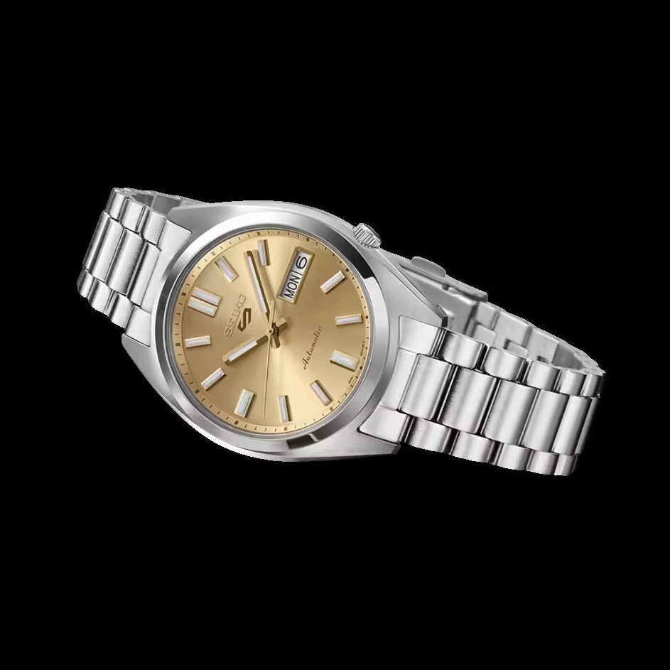 Seiko 5 Sports SNXS Automatic Gold Dial Silver Steel Strap Watch for Men - SRPL59K1