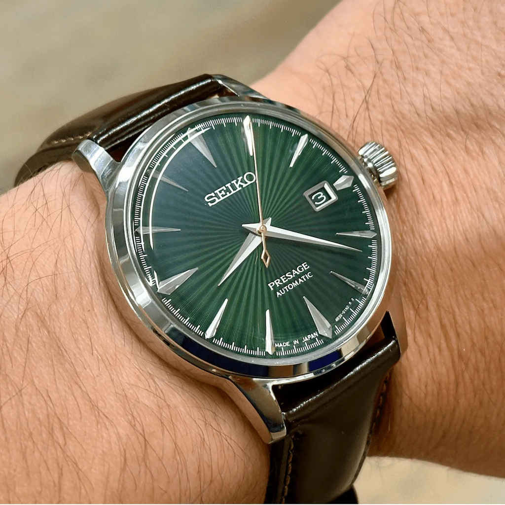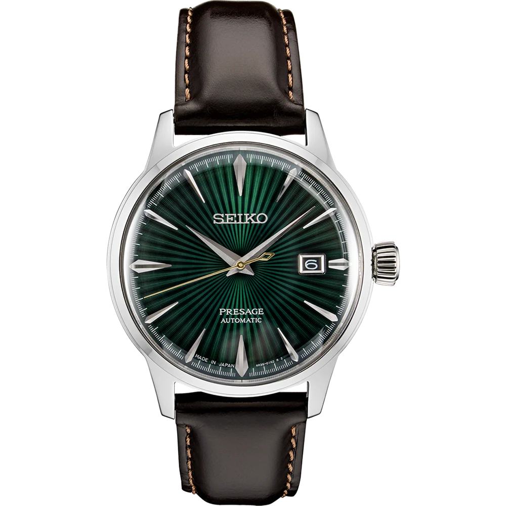 Seiko Presage Cocktail Time Automatic Green Dial Brown Leather Strap Watch for Men - SRPD37J1