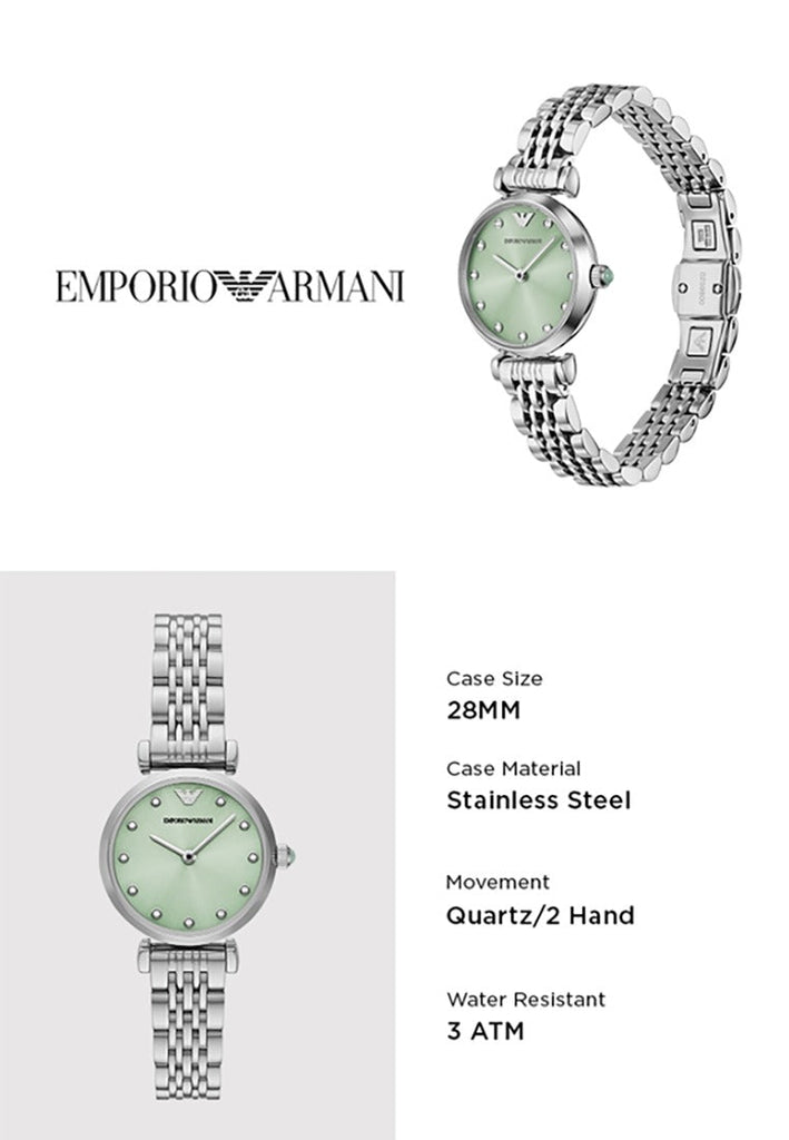 Emporio Armani Gianni T Bar Green Dial Silver Steel Strap Watch for Women - AR11667