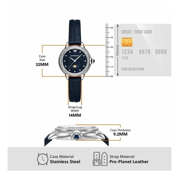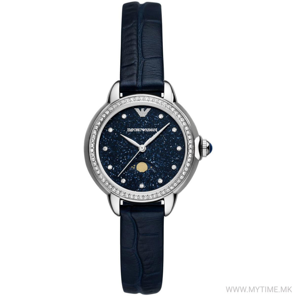 Emporio Armani Mia Moonphase Blue Dial Blue Leather Strap Watch for Women - AR11629