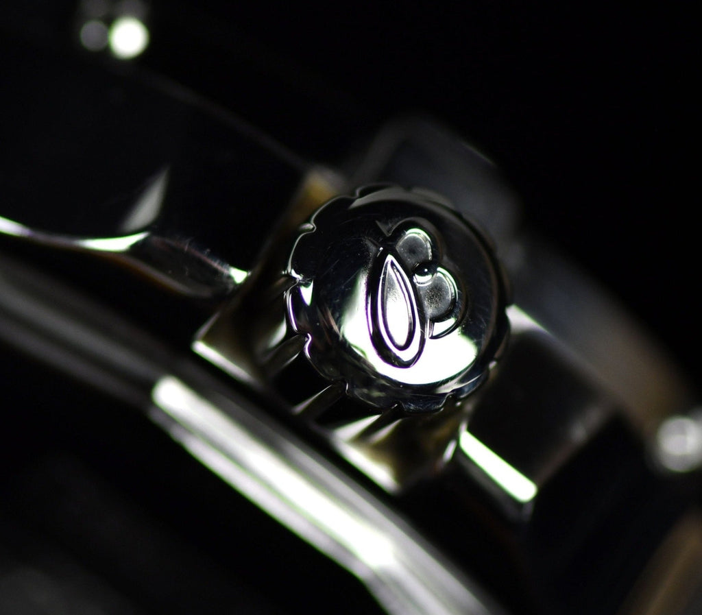 Polished finished quarter hour markers with mate finished engraved numbers on the 15, 30 & 45 markers & a luminous dot at the 0 mark.