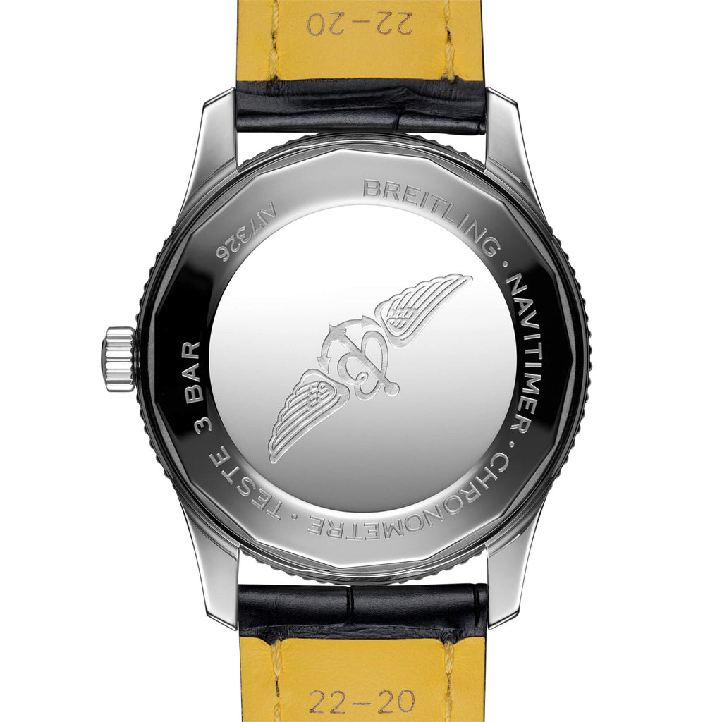 The Breitling Navitimer 1 Automatic 41 gives a brand-new take on the Navitimer, effortlessly combining the historic appeal of a true icon with the refinement of a sophisticated, contemporary timepiece. The watch features Breitling’s famous circular slide rule, as well as a distinctive beaded bezel in a 41-mm stainless steel case with a clean three-hand black dial. It is powered by the Breitling Caliber 17, a COSC-certified chronometer. The hour markers, as well as the hour and minute hands, are coated with Super-LumiNova®, a luminescent material that ensures excellent legibility in all lighting conditions. This Navitimer 1 Automatic 41 is available with a stainless steel Navitimer bracelet or a black alligator strap with either a pin or folding buckle. Compact, comfortable and cosmopolitan, it is an elegant reinvention of a timeless, legendary watch.