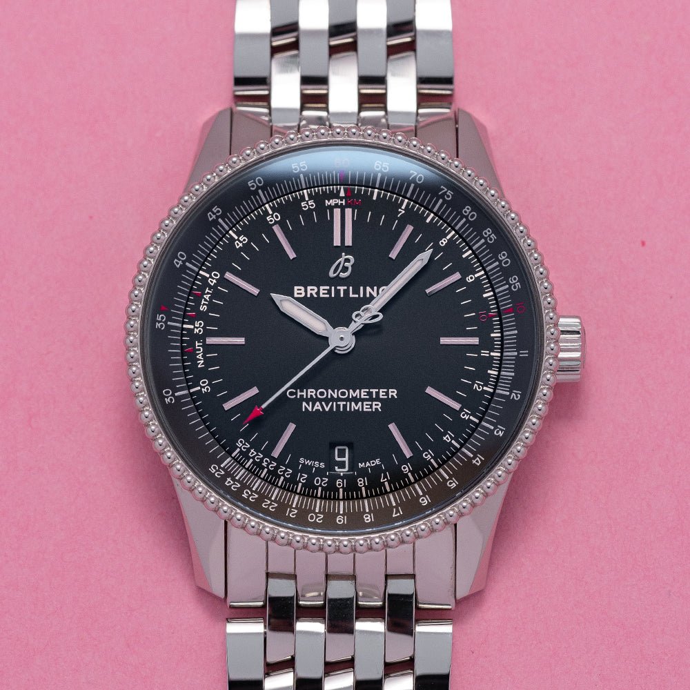 The Breitling Navitimer Automatic 38mm combines classic aviation heritage with modern precision. Featuring a sleek black dial and robust stainless steel case, this timepiece offers reliable automatic movement in a compact 38mm size. Its iconic slide rule bezel enhances functionality, making it a sophisticated choice for discerning collectors who value both style and technical excellence.