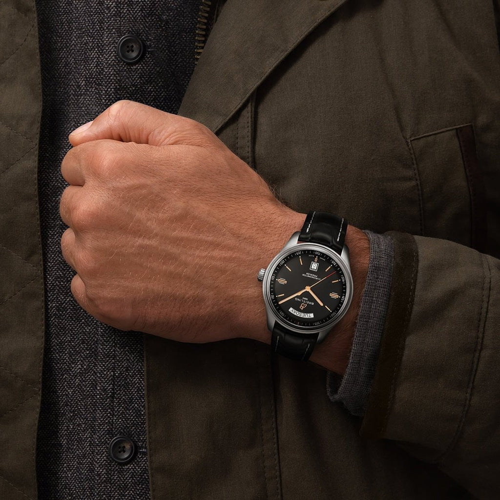The Breitling Premier Automatic 40mm combines classic elegance with precise functionality. Featuring a sleek black dial with day and date displays, this timepiece offers clear readability and practical daily use. Its 40mm stainless steel case pairs seamlessly with a black leather strap, delivering both comfort and sophistication. Powered by a reliable automatic movement, it ensures accurate timekeeping for the discerning gentleman. Ideal for those who appreciate refined design and dependable performance in a versatile wristwatch.