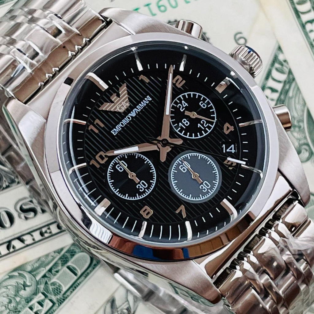 Emporio Armani AR0373 Franco Men's Watch – Black Dial & Silver Steel Strap