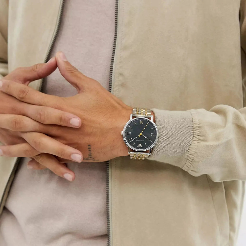 Emporio Armani AR11228 Kappa Quartz Men's Watch – Black Dial & Two-Tone Mesh Bracelet