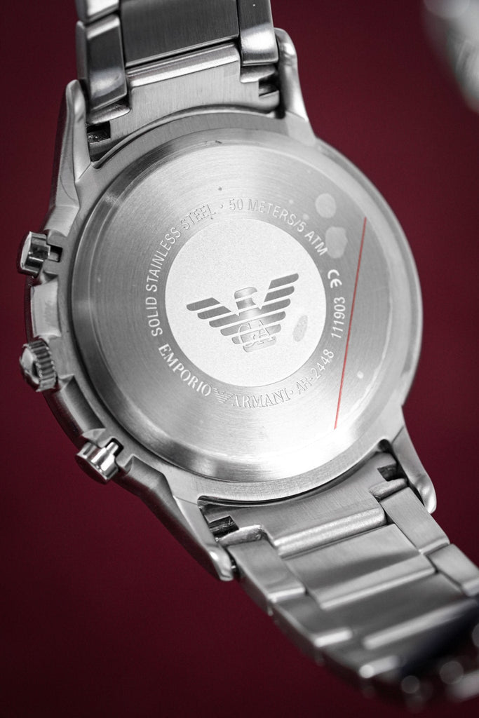 Emporio Armani AR2448 Renato Chronograph Men's Watch – Blue Dial & Silver Steel Strap