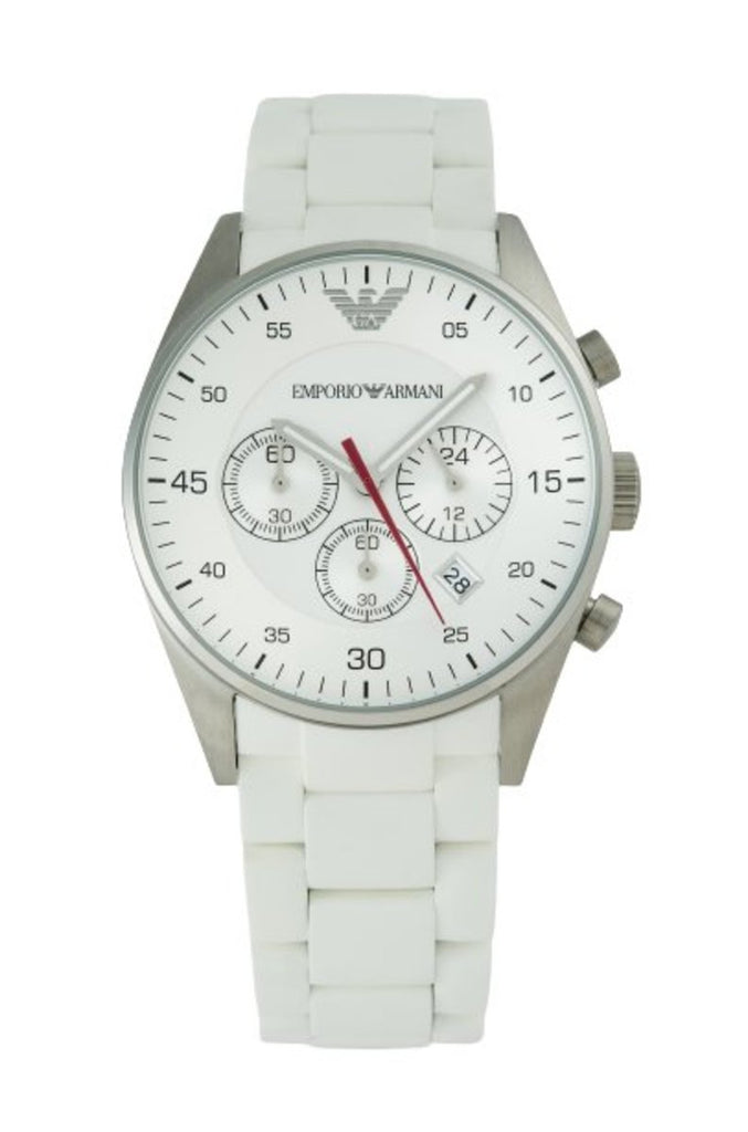 Emporio Armani AR5859 Sport Chronograph Men's Watch – White Dial & White Silicone Strap