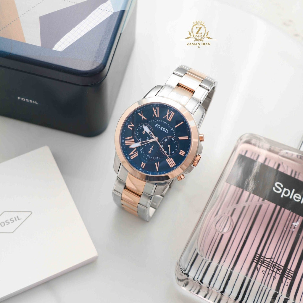 Fossil FS5024 Grant Chronograph Men's Watch – Blue Dial & Two-Tone Steel Bracelet