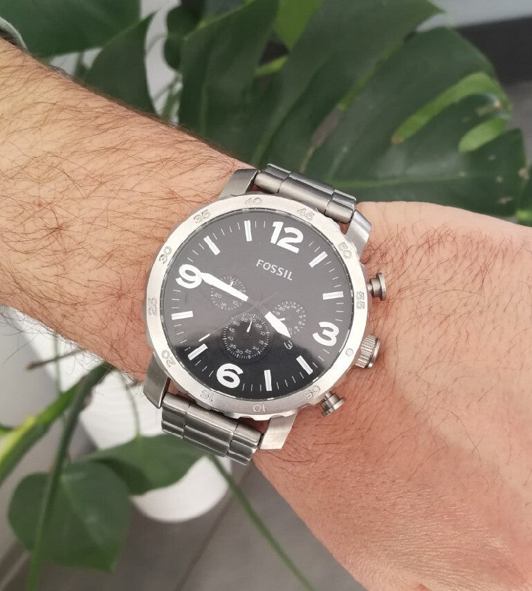 Fossil JR1354 Nate Chronograph Men's Watch – Black Dial & Black Leather Strap