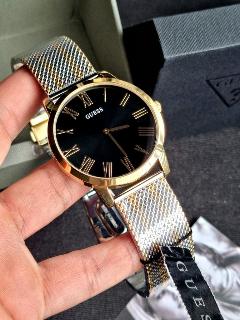 Guess W1179G2 Richmond Quartz Women's Watch – Black Dial & Two-Tone Mesh Bracelet