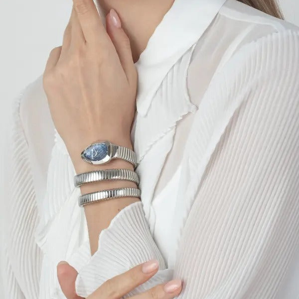 Just Cavalli Serpente Metallica Blue Dial Silver Steel Strap Watch for Women - JC1L209M0025