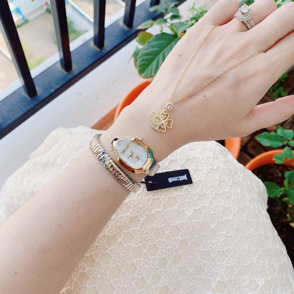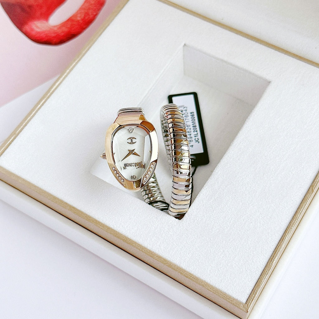 Elevate your style with the Just Cavalli Serpente Metallica watch, designed for women who appreciate bold elegance. Featuring a mesmerizing mother of pearl dial and a striking two-tone steel strap, this timepiece perfectly blends sophistication with modern flair. Its durable construction ensures lasting wear, while the unique design captures attention effortlessly. Make every moment stylishly unforgettable with this distinctive accessory.