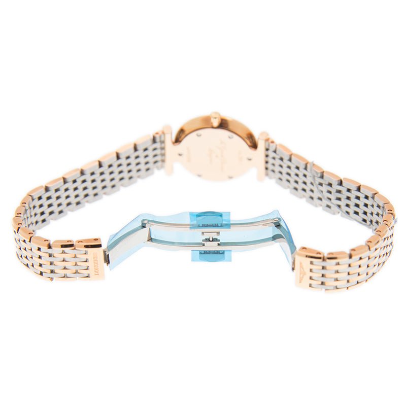 The remarkably slim case measures to a feminine 24mm in diameter and is crafted from rose gold PVD stainless steel to pair with the matching two toned stainless steel and rose gold PVD fine link bracelet with a triple safety folding clasp and push-piece opening mechanism. Embraced within is the classic L209 quartz movement, a Swiss made calibre which promises only the best in precision and the performance of the central hands for hours and minutes.