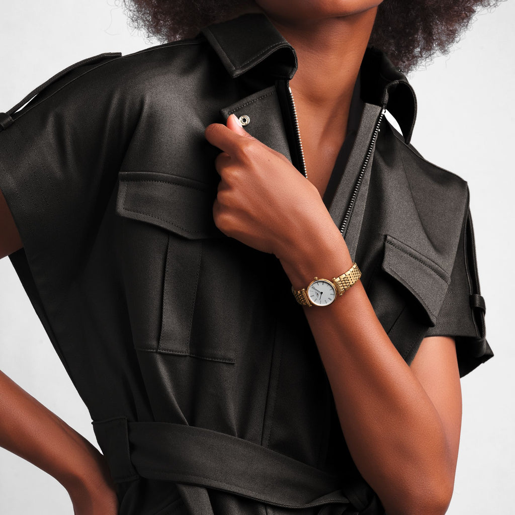Elevate your style with the Longines La Grande Classique De Longines watch for women. With a white dial, gold steel strap, and precise Swiss movement, this elegant timepiece exudes luxury and sophistication. Embrace the timeless appeal of Longines and make a statement with this classic watch.
