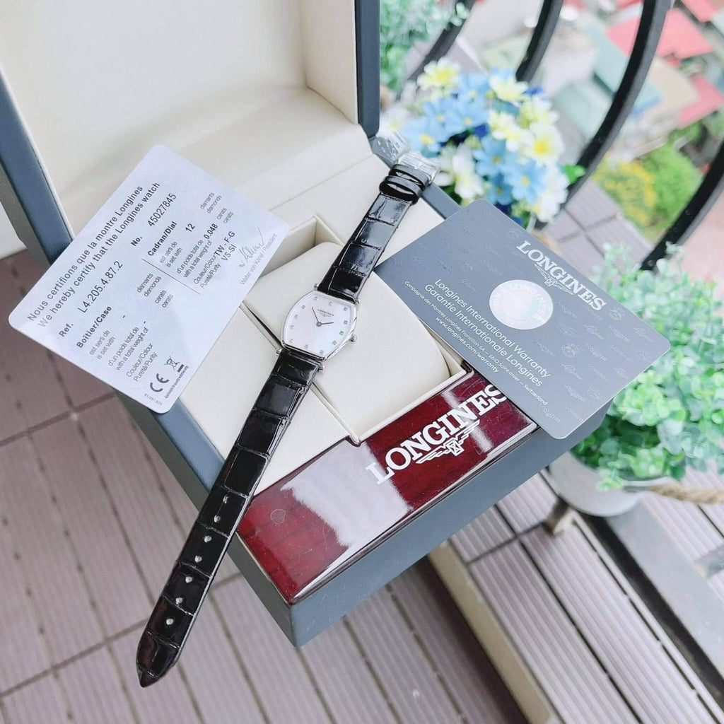 Longines L4.205.4.87.2 La Grande Classique de Longines Tonneau Quartz Women's Watch – Mother of Pearl Dial & Black Leather Strap – 22mm