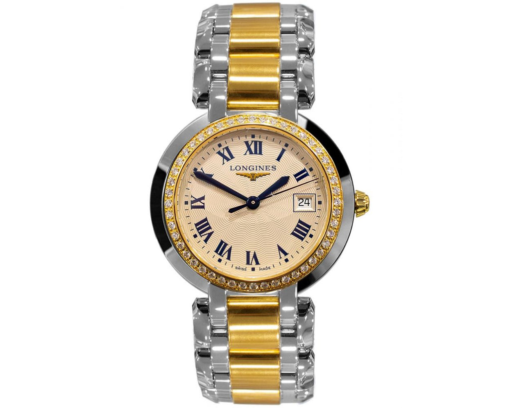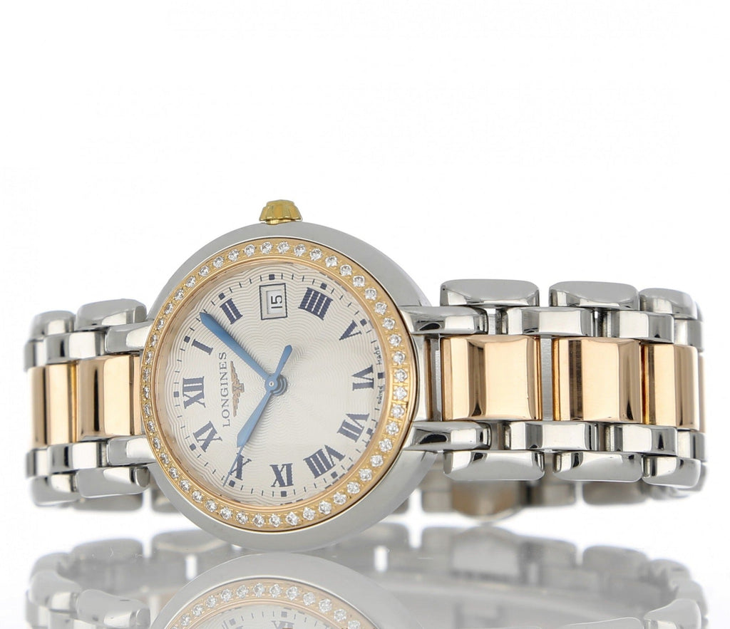 Longines L8.110.5.95.6 PrimaLuna Quartz Women's Watch – Mother of Pearl Dial with Diamond Markers & Two-Tone Stainless Steel Bracelet – 26.5mm