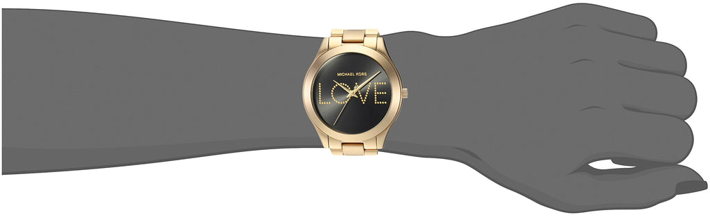 Michael Kors MK3803 Slim Runway Women's Watch – Black Dial & Gold Steel Bracelet