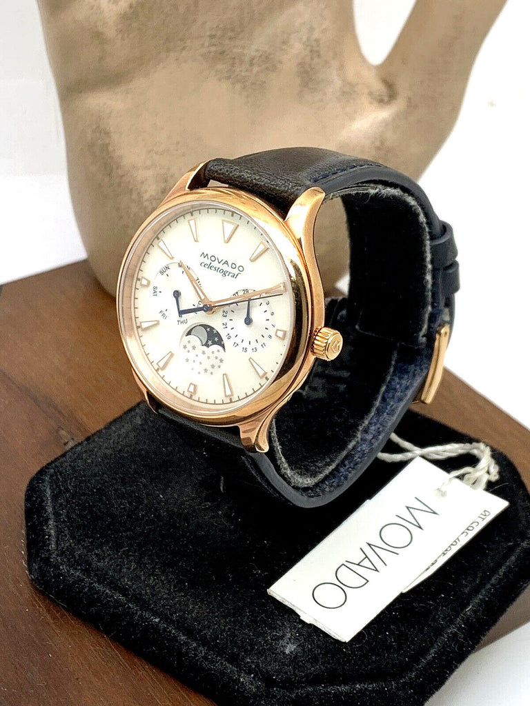 The Movado Heritage Celestograf for women features a refined white mother-of-pearl dial paired with a blue leather strap, combining elegance with comfort. This timepiece offers precise timekeeping and a sophisticated design that complements both casual and formal attire. Its craftsmanship reflects Movado’s commitment to quality, making it a distinguished accessory for discerning wearers.