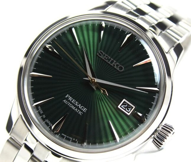 Seiko Presage Cocktail Time Automatic Green Dial Silver Steel Strap Watch for Men - SRPE15J1