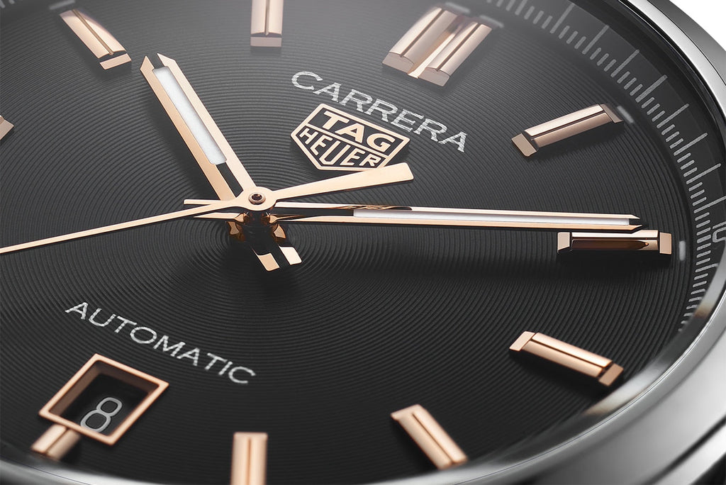 Fine details lend elegance to this confident 39mm watch. The 5N rose gold plated hands, indexes, and TAG Heuer logo make a distinctive statement.