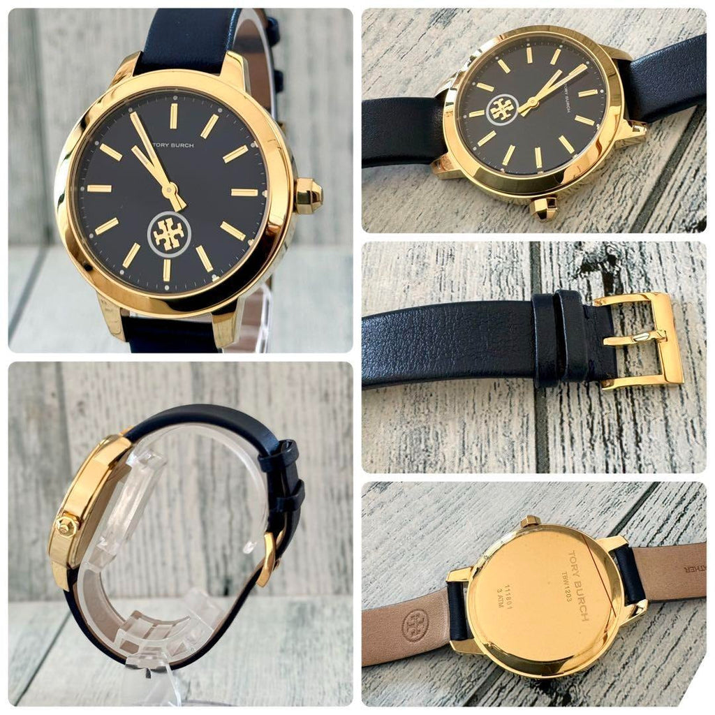 • Three-hand analog display with quartz movement. Scratch-resistant mineral crystal. Navy dial includes gold-tone hands and hour markers, iconic double T logo, minute track, and Tory Burch detailing. Octagon-shaped crown. Water resistant 5 ATM. Logo medallion display case included features drawer, pull-out compartment, and note from Tory Burch. Imported. Measurements: Case Height: 38 mm Case Width: 38 mm Case Depth: 9 mm Band Width: 14 2⁄9 mm Band Circumference/L