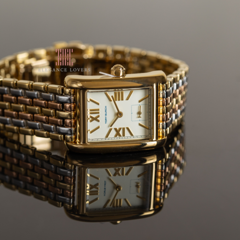This Tory Burch TBW1078 Eleanor Tri-Tone Stainless Steel Three-Hand Watch is a stylish and functional timepiece. Made with high-quality stainless steel, it features a tri-tone design and a three-hand movement for accurate timekeeping. Elegant and durable, this watch is perfect for any occasion.